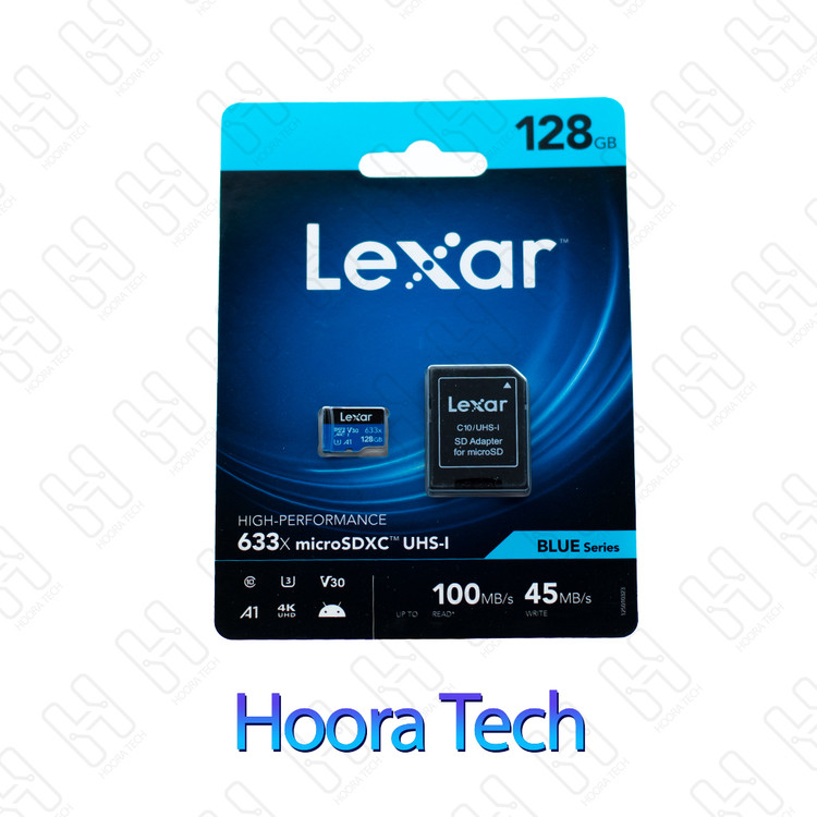 کارت حافظه microSDXC لکسار lexar 633X A1 U3 V30 استاندارد UHS-I سرعت 100MBps ظرفیت 128 گیگابایت به همراه آداپتور SD