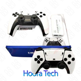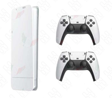 دو دسته بازی بیسیم و شارژی، شبیه به دستههای PS5، در جعبه گیم استیک پرو قرار دارند که با استفاده از دانگل بلوتوث به دستگاه متصل میشوند.