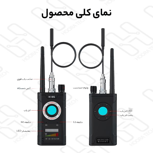 سناریوی کاربردی: 1. تشخیص لیزری لنز 2. تشخیص فرکانس باصدا 3. تشخیص فرکانس بی صدا(لرزش) 4. نمایشگر ال ای دی 5. تشخیص مگنت (GPS و ردیاب) محدوده فرکانس: 1 مگاهرتز تا 6500 مگاهرتز محدوده تشخیص دوربین وایرلس: 10 متر مربع